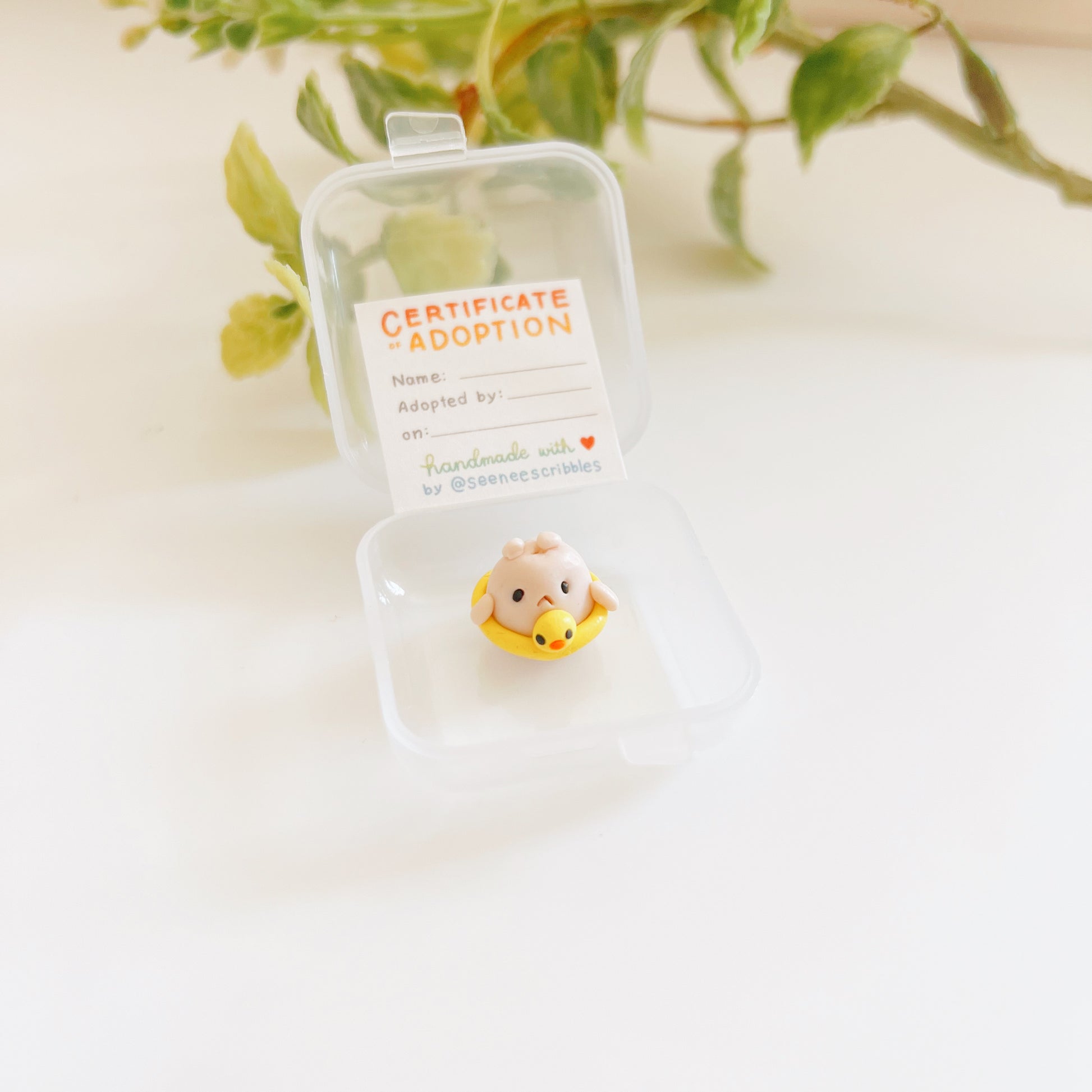Each figurine comes in a clear 1x1 inch trinket box and includes a tiny adoption certificate for an extra dose of fun. Adopt one today!