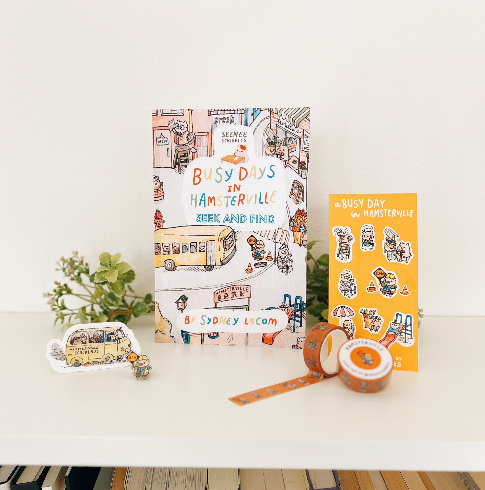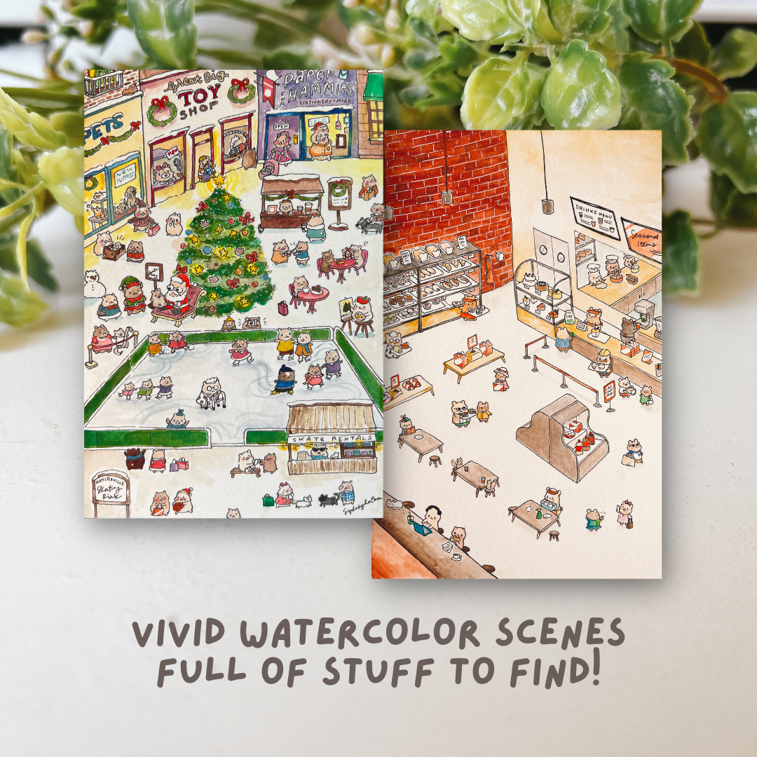 From the imagination of illustrator Sydney LaCom, spend hours of fun exploring the town of Hamsterville on a busy day. Can you spot Construction Hammy and his fantastic mustache reminding everyone to cross safely? How about Granny Hammy waddling around with her walker? Find more characters and objects in these beautiful hand-painted scenes.