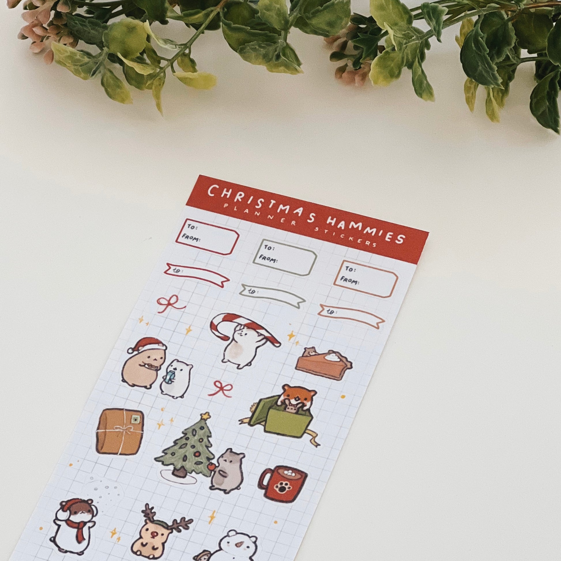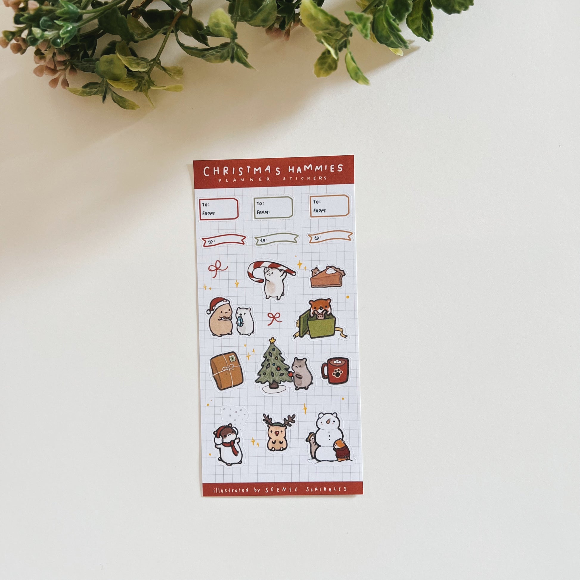 This sticker sheet features tiny hammies doing their favorite Christmas activities. Printed from my original watercolor painting, they are perfect for bullet journaling and scrapbooking. Use the to/from stickers to send gifts to your loved ones.