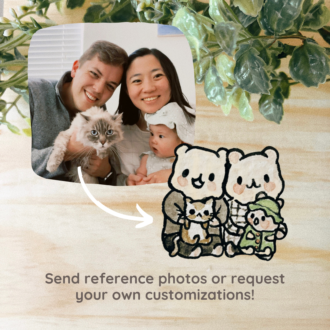CUSTOMIZATIONS ALLOWED: I will only paint the hammies - no background colors/scenes. If you'd like to request specific details like clothing that are not pictured in the reference photo, please note that it may cost extra. I typically do not add hair (they're hamsters😛), just clothing and accessories! Please do not request anything explicit or illegal.
