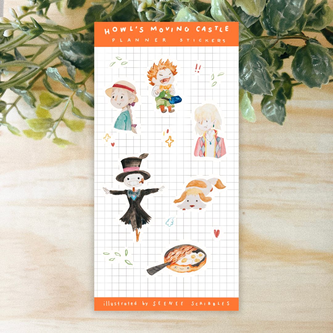 Inspired by my love for all things Studio Ghibli, this sticker sheet features some of the best characters and items from Howl's Moving Castle, each sticker carefully hand-painted using watercolor then printed in-house. It is perfect for bullet journaling and scrapbooking. Don't forget to check out my other Studio Ghibli-inspired products as well!