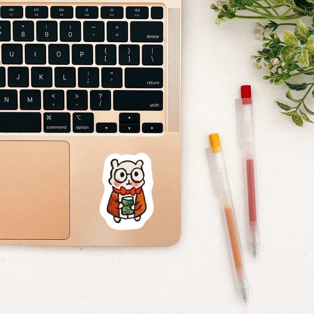 Also featured in my Busy Busy Hamsterville Art Print, this little Librarian Hammy has all the knowledge (or at least, he has access to a lot of it). Stick him on your phone, laptop, water bottle, you name it!