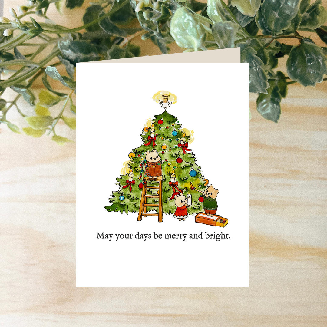 May Your Days Be Merry and Bright Christmas Tree Hammies Watercolor Greeting Card