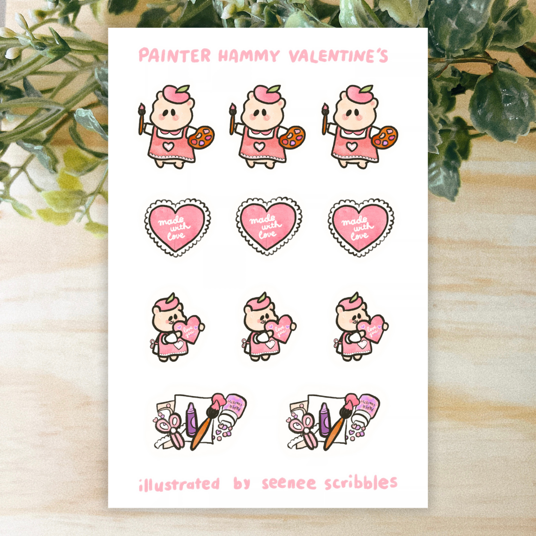 Painter Hammy Valentine's Day Sticker Sheet