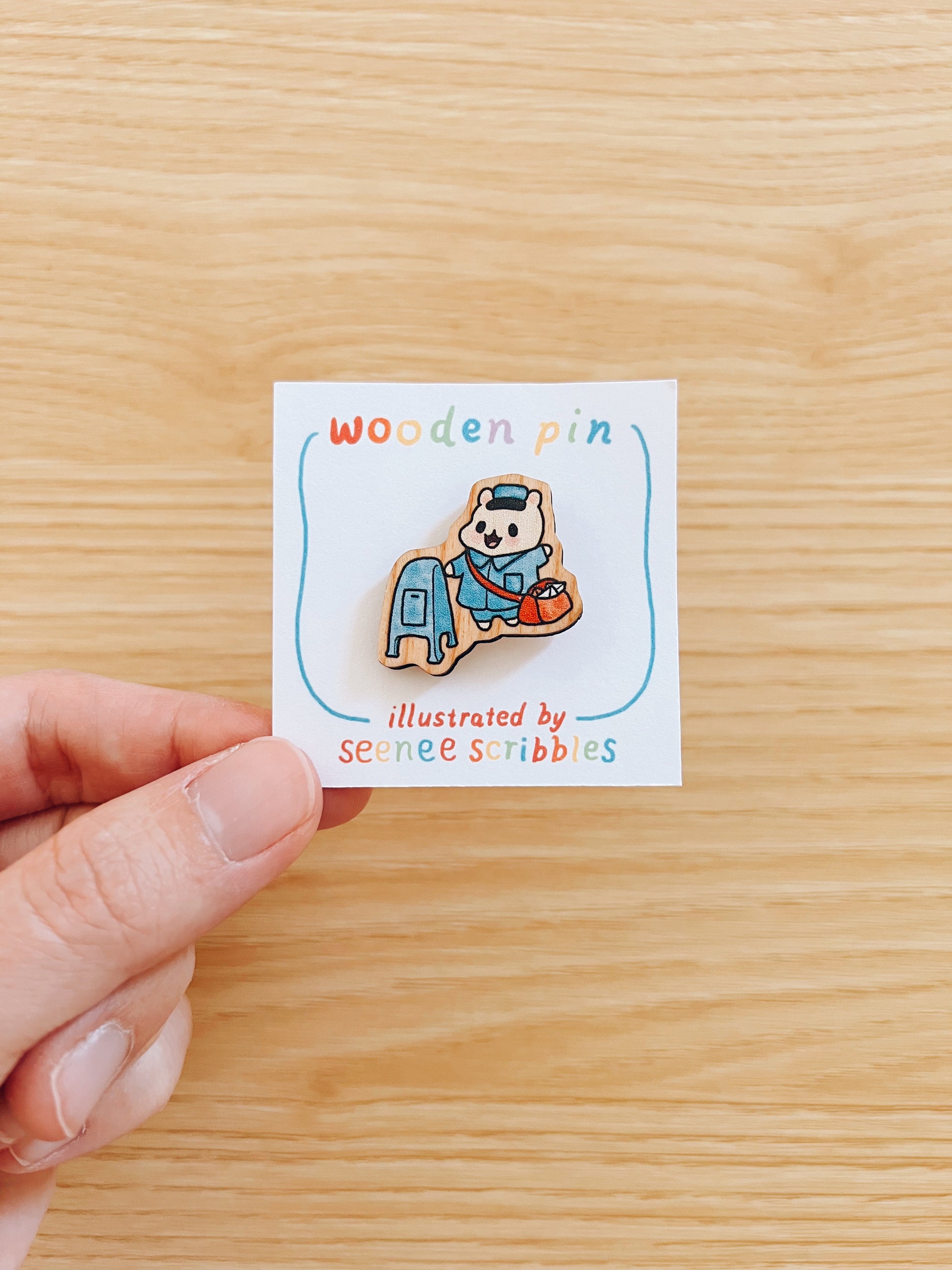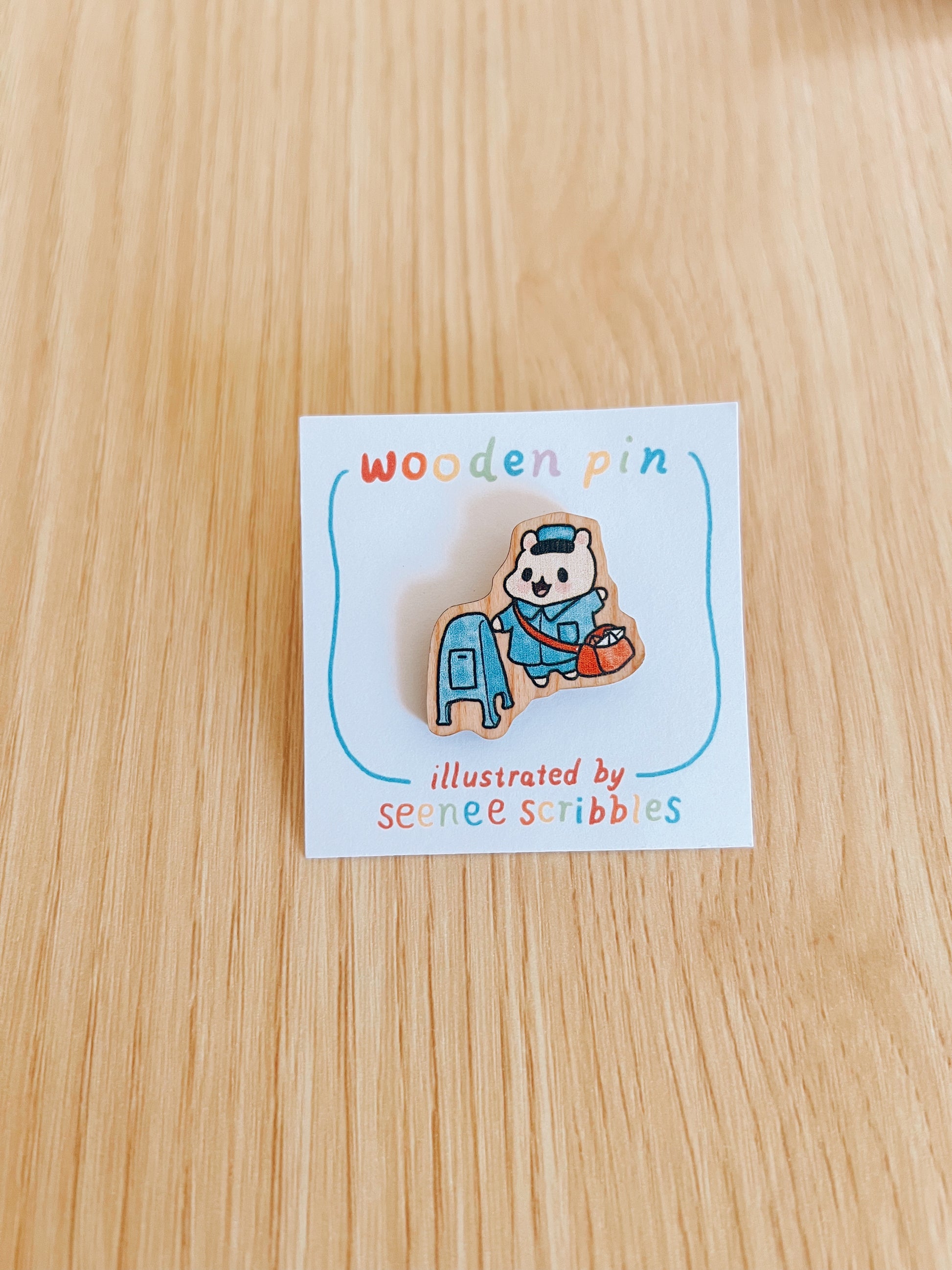 Meet Hamsterville's most reliable Post Hammy! Rep him with this wooden pin on your backpack, lanyard, and more.