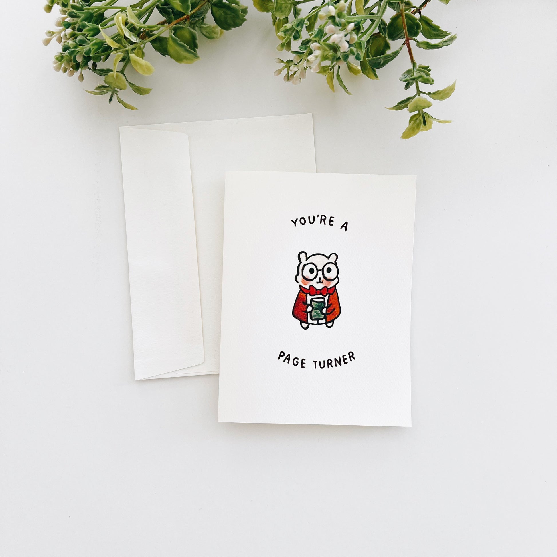 You're a Page Turner Librarian Hammy Watercolor Greeting Card